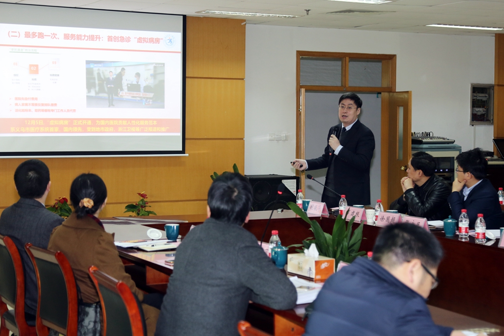 傅建民主任从综合医改进展及“健共体”建设情况、加强内部审计及财务监管、扎实做好医疗卫生领域党风廉政建设三个方面,作了《义乌市综合医改及医共体建设情况汇报》。