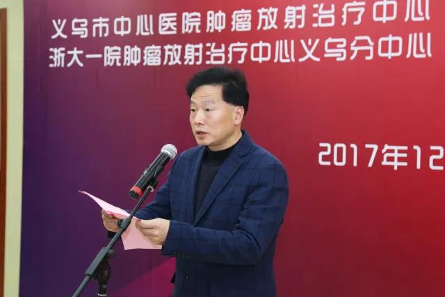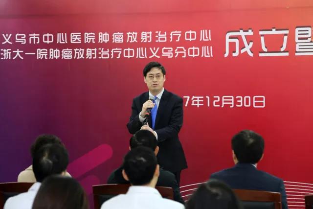 胡振华院长在讲话中说,放疗是治疗肿瘤的主要手段之一,但由于放疗的特殊性,接受过放疗的病人在一段时间内需要频繁的接受放疗,以前义乌的肿瘤病人都需要去杭州上海做放疗,非常不方便,从今天开始,他们在家门口就可以得到与浙大一院同质化的、完整的肿瘤综合治疗服务。相信今后中心医院提供的医疗服务会越来越好,义乌群众在家门口能享受到的医疗服务也会越来越好。