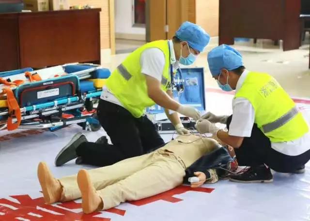 操作技能比赛主要内容是急救流程和急救技能。根据伤员创伤、心脑血管意外、触电、猝死等不同突发情况,急救人员相互配合,通过现场评估、病人评估、气道管理、出血控制、心肺复苏、除颤、气管插管、骨折固定、脊柱固定、病人固定搬抬等流程,稳定伤员伤情后立即送往医院。评委根据急救流程合理性、操作准确性、配合协作性等进行打分。