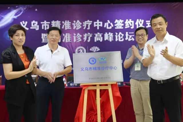 骆小俊副市长、傅建民主任、陈海斌董事长、丁国强院长共同为“义乌市精准诊疗中心”揭牌。