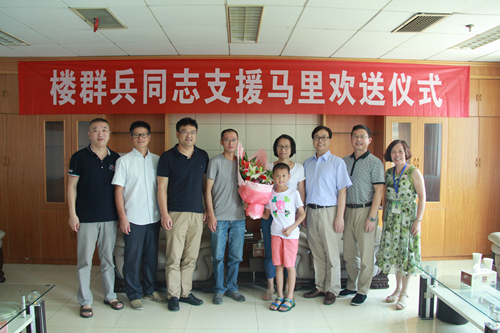 欢送会上,市卫计委领导和医院领导向楼群兵及家属表示衷心的感谢,感谢他们舍小家为大家,代表祖国赴马里执行援外医疗任务。希望他能安心参加援外医疗工作,为国争光。祝愿楼群兵医师保重身体,胜利凯旋。
