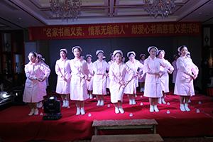 12月27日晚,由我院文桐社联合市书法家协会、江苏济川书画院联合举办的“名家书画义卖,情系无助病人,书画慈善义拍”活动在义乌市旺都酒店举办。国内著名书画家金鉴才、李章庸、石君一、贝新法、徐安华等捐助的150余幅书画精品,接受省内外10多家企业和个人的竞拍。