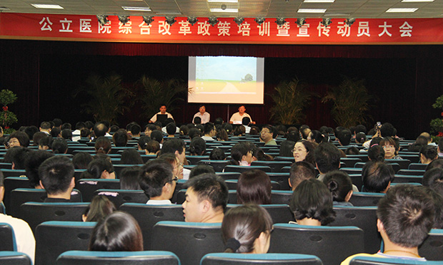 院长丁国强对这次公立医院综合改革试点工作的总体目标、工作思路、主要内容及工作安排等做了详细解读。丁院长说,长期以来,存在着社会反响强烈的“看病难、看病贵”问题,而“以药补医”的机制问题,也成为公立医院的诟病,严重制约了医院的建设与发展。这次医改我们要明确破除“以药补医”的旧机制,通过“一减二调一补”的原则,建立起公立医院经济运行的新机制。同时还包含了加强公立医院综合管理、全面改善公立医院的医疗服务、提升公立医院的服务能力、充分调动广大医务人员积极性以及加快推进形成多元化办医格局等五大方面的内容,希望广大职工认真领会这次公立医院综合改革试点工作相关政策,积极推进公立医院综合改革试点工作顺利进行。